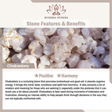 Chalcedony is a nurturing stone that promotes brotherhood and goodwill. it absorbs negative energy. lt brings the mind, body, emotions, and spirit into harmony. it also contains a lot of wisdom and meaning for those who are seeking it, especially under the pretense that it can teach you a lot about yourself, Chalcedony is best used during moments of indecision and frustration, showing an intense ability to help people think through decisions in the way they are not typically confronted with.