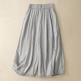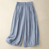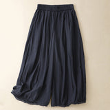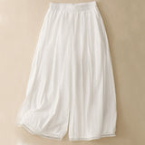 Buddha Stones Casual Hem Hollow Design Women's Cotton 7-8 Length Wide Leg Pants With Pockets