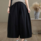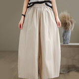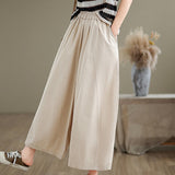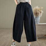 Buddha Stones Casual Plain Cotton Women's 7-8 Length Wide Leg Pants With Pockets