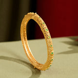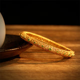 Buddha Stones Hollow Filigree Design Copper Plated Gold Wealth Bracelet Bangle