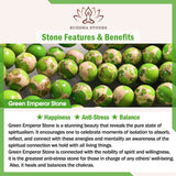 Green Emperor Stone is connected with the nobility of spirit and willingness, it is the greatest anti-stress stone for those in charge of any others' well-being Also,it heals and balances the chakras.
