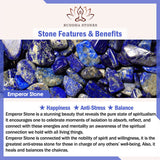 Emperor Stone is a stunning beauty that reveals the pure state of spiritualism. It encourages one to celebrate moments of isolation to absorb, reflect, and connect with these energies and mentality an awareness of the spiritual connection we hold with all living things.