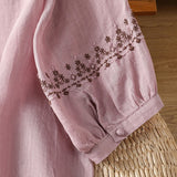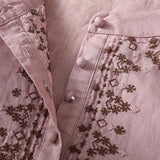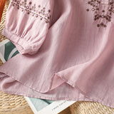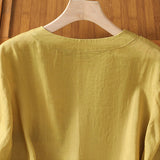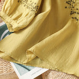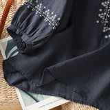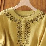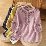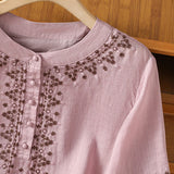 Buddha Stones Symmetrical Embroidery Cotton Women's Crew Neck Shirt