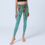 Buddha Stones Vibrant Flowers Green Willow Leaves Print Gym Leggings Women's Yoga Pants