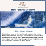 Sodalite (also known as Blue Vein Stone Crystal) can clear mental blocks and confusion. lt encourages rational thinking and promotes intuitive perception and the ability to express emotions. lt can calm them and can help with learning. it's a gemstone of insight, harmony, and intuition that helps open the throat chakra.