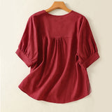 Buddha Stones 2pcs Plain Women's Short Sleeve Shirt Harem Pants Meditation Clothing Set