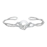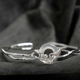 Buddha Stones 925 Sterling Silver Peace Buckle White Agate Protection Bracelet Bangle