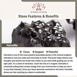 Hematite is one of the most powerful grounding stones in the mineral kingdom, intended to root your body and mind back to Earth. This stone helps refocus your thoughts and actions into those that matter to you most while guiding you on the right path. It's a stone of attraction, much like that of a magnet. Hematite is constantly pulling down excess energy from your environment to help you use it in your best interests. Once your focus becomes anchored to the Earth, Hematite shows you that anything you desire is achievable.