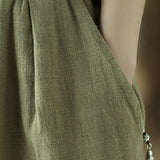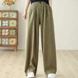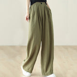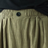 Buddha Stones Commute Button Design Women's Cotton Linen Elastic Waistband Pants With Pockets
