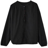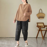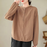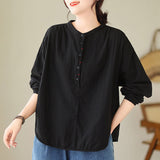 Buddha Stones Commute Spring Plain Half Buttons Simple Design Women's Cotton Linen Shirt