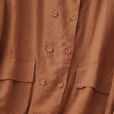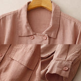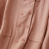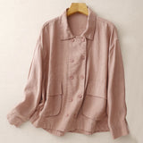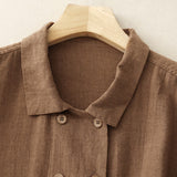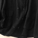 Buddha Stones Double‑Breasted Design Long Sleeve Women's Cotton Linen Jacket With Pockets