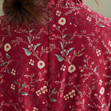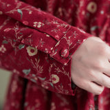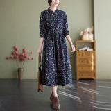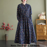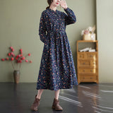 Buddha Stones Ethnic Printing Drawstring Long Sleeve Cotton Linen Maxi Dress With Pockets