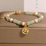 Buddha Stones Natural Bamboo Flower Green Aventurine Pearl Balance Bracelet