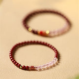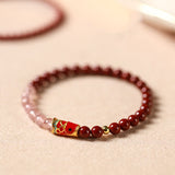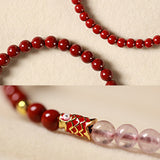 Buddha Stones Natural Cinnabar Pink Crystal Strawberry Quartz Lucky Koi Fish Blessing Bracelet