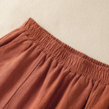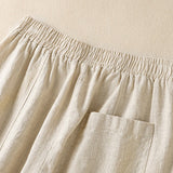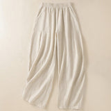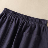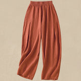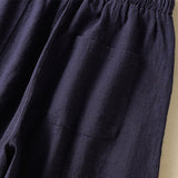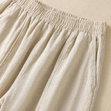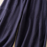 Buddha Stones Plain Simple Design High Waist Women's Cotton Linen Harem Pants With Pockets