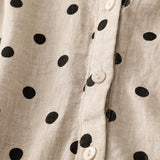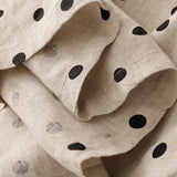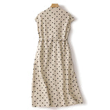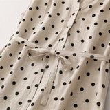 Buddha Stones Summer Polka Dot V-Neck Lace-up Cotton Linen Women's Midi Dress With Pockets